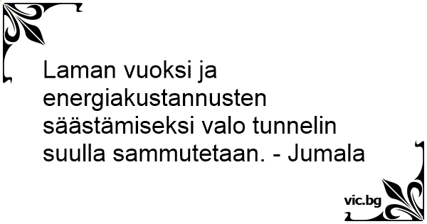 Laman vuoksi ja energiakustannusten säästämiseksi valo tunnelin suulla sammutetaan. - Jumala