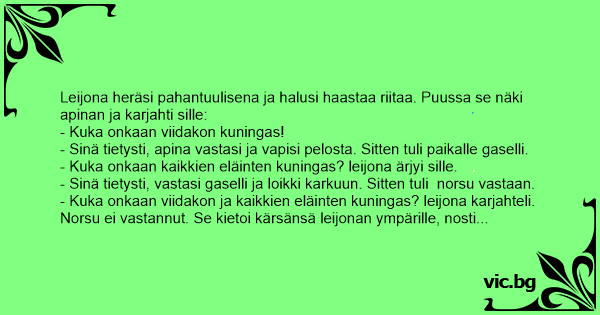 - Kuka onkaan kaikkien eläinten kuningas? leijona ärjyi sille.
