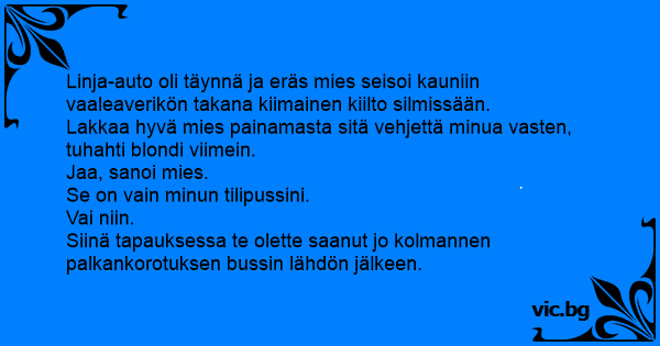 Linja-auto oli täynnä ja eräs mies seisoi kauniin vaaleaverikön takana kiimainen kiilto silmissään.