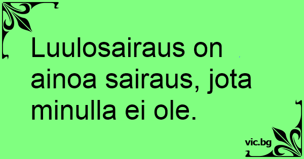 Luulosairaus on ainoa sairaus, jota minulla ei ole.