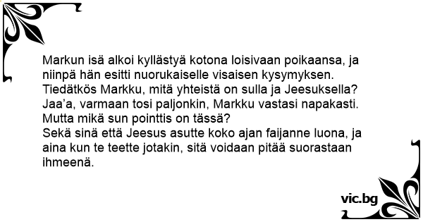 Tiedätkös Markku, mitä yhteistä on sulla ja Jeesuksella?