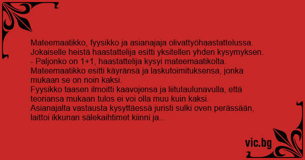 - Paljonko on 1+1, haastattelija kysyi mateemaatikolta.