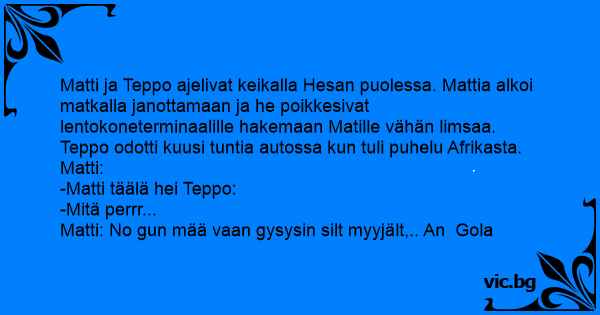 Matti: No gun mää vaan gysysin silt myyjält,.. An Gola