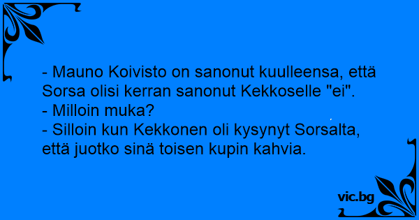- Mauno Koivisto on sanonut kuulleensa, että Sorsa olisi kerran sanonut Kekkoselle "ei".