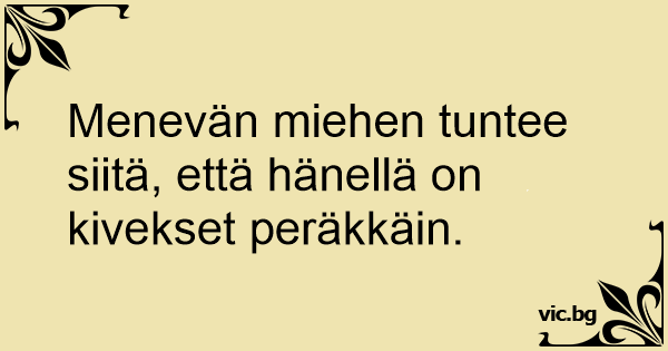 Menevän miehen tuntee siitä, että hänellä on kivekset peräkkäin.