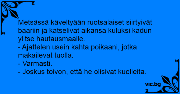 Metsässä käveltyään ruotsalaiset siirtyivät baariin ja katselivat aikansa kuluksi kadun ylitse hautausmaalle.