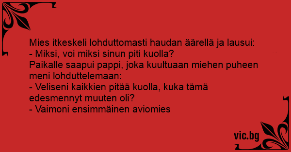 Paikalle saapui pappi, joka kuultuaan miehen puheen meni lohduttelemaan: