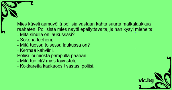 - Kokkareita kaakaoosi! vastasi poliisi.
