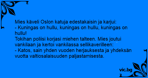 Tokihan poliisi korjasi miehen talteen. Mies joutui vankilaan ja kertoi vankilassa sellikaverilleen: