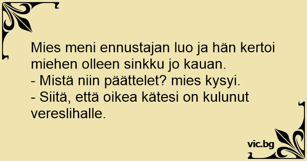 Mies meni ennustajan luo ja hän kertoi miehen olleen sinkku jo kauan.