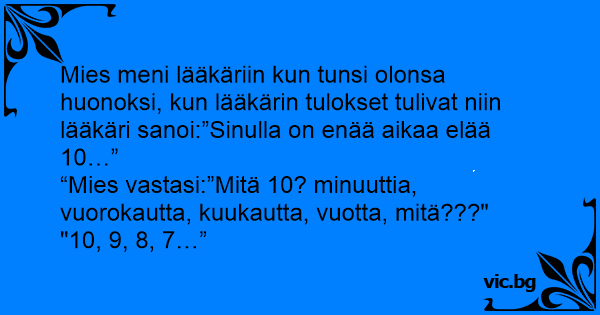 “Mies vastasi:”Mitä 10? minuuttia, vuorokautta, kuukautta, vuotta, mitä???"