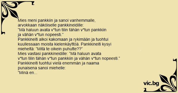 ”Mä haluun avata v*tun tilin tähän v*tun pankkiin