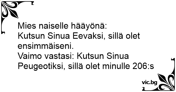 Vaimo vastasi: Kutsun Sinua Peugeotiksi, sillä olet minulle 206:s