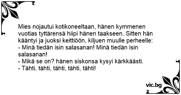 - Minä tiedän isin salasanan! Minä tiedän isin salasanan!