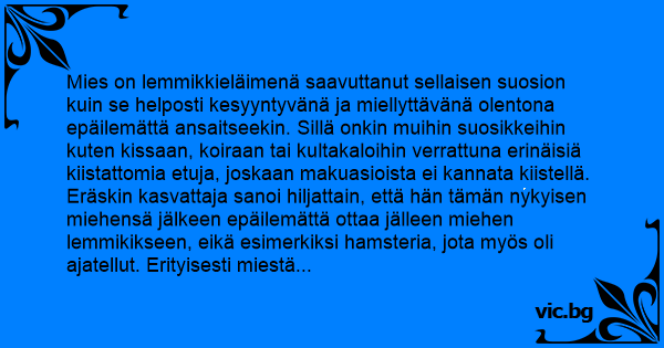 Mies on lemmikkieläimenä...