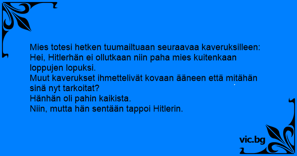 Mies totesi hetken tuumailtuaan seuraavaa kaveruksilleen: