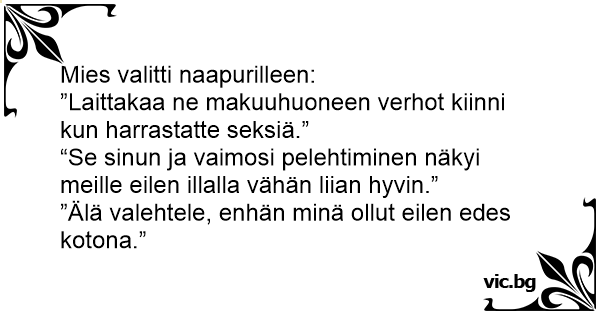 ”Älä valehtele, enhän minä ollut eilen edes kotona.”
