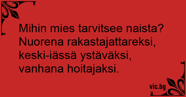 Nuorena rakastajattareksi, keski-iässä ystäväksi, vanhana hoitajaksi.