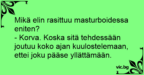 Vilken kroppsdel använder man mest när man onanerar? - Örona! Därför att man ligger och lyssnar om det kommer någon.
