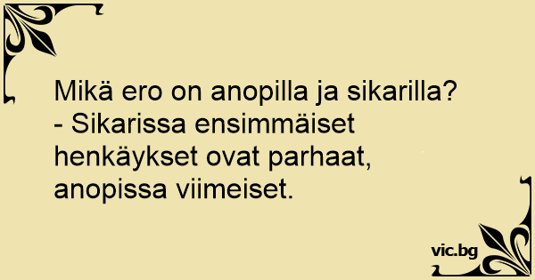 - Sikarissa ensimmäiset henkäykset ovat parhaat, anopissa viimeiset.