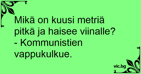 Mikä on kuusi metriä pitkä ja haisee viinalle?