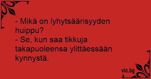 - Se, kun saa tikkuja takapuoleensa ylittäessään kynnystä.