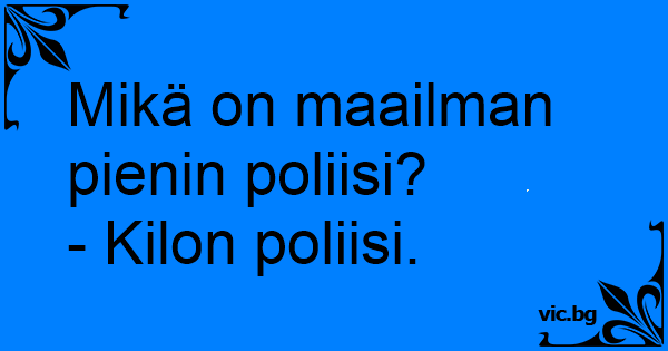 Mikä on maailman pienin poliisi?<br />- Kilon poliisi.