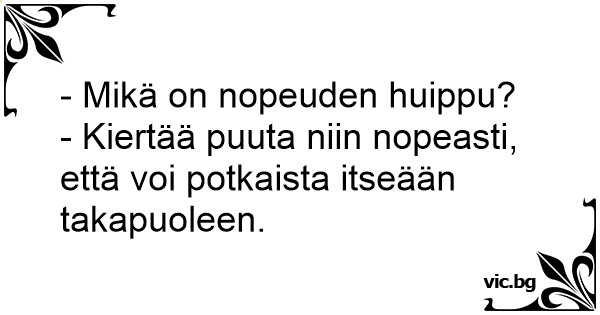 - Kiertää puuta niin nopeasti, että voi potkaista itseään takapuoleen.