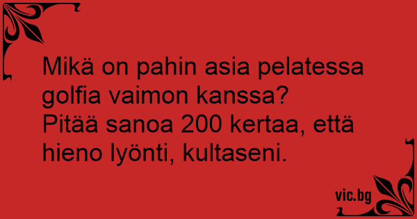 Mikä on pahin asia pelatessa golfia vaimon kanssa?