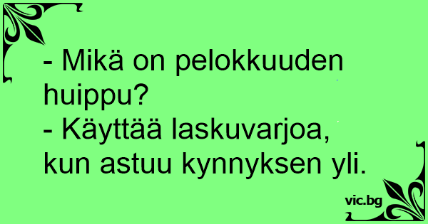 - Käyttää laskuvarjoa, kun astuu kynnyksen yli.