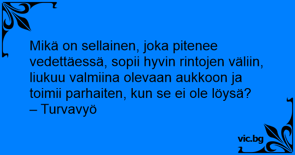 Mikä on sellainen, joka pitenee vedettäessä, sopii hyvin rintojen väliin, liukuu valmiina olevaan aukkoon ja toimii parhaiten, kun se ei ole löysä?