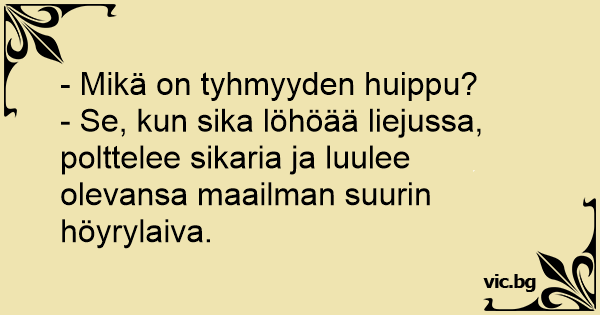 - Se, kun sika löhöää liejussa, polttelee sikaria ja luulee olevansa maailman suurin höyrylaiva.