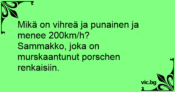 Mikä on vihreä ja punainen ja menee 200km/h?