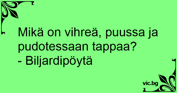 Mikä on vihreä, puussa ja pudotessaan tappaa?
