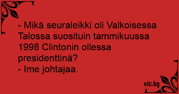 - Mikä seuraleikki oli Valkoisessa Talossa suosituin tammikuussa 1998 Clintonin ollessa presidenttinä?