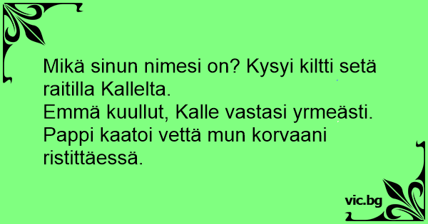 Mikä sinun nimesi on? Kysyi kiltti setä raitilla Kallelta.