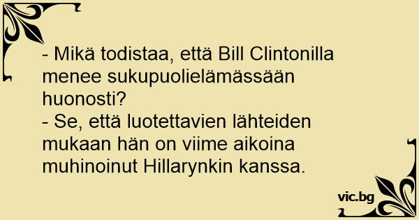 - Mikä todistaa, että Bill Clintonilla menee sukupuolielämässään huonosti?
