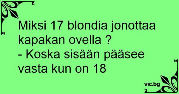 Miksi 17 blondia seisoi baarin edessä? – Piti olla 18, jotta pääsi sisään.