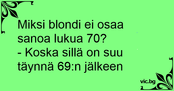 Miksi blondit eivät pysty laskemaan 70:een ? - 69:ssä tulee suu täyteen.