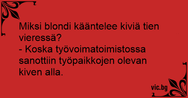 - Koska työvoimatoimistossa sanottiin työpaikkojen olevan kiven alla.