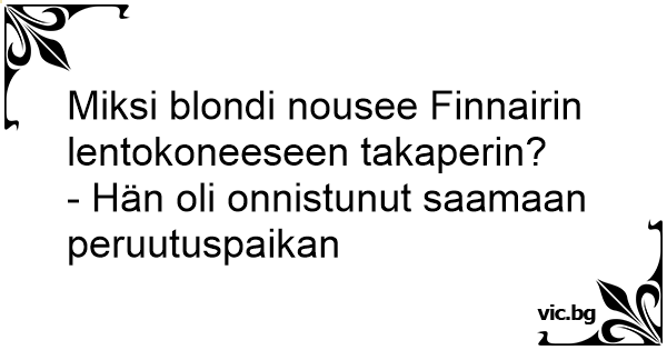 Miksi blondi nousee Finnairin lentokoneeseen takaperin?