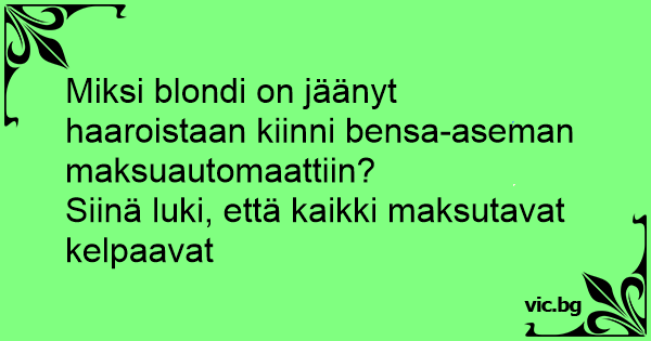 Miksi blondi on jäänyt haaroistaan kiinni bensa-aseman maksuautomaattiin?