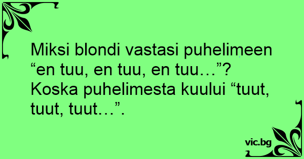 Miksi blondi vastasi puhelimeen “en tuu, en tuu, en tuu…”?