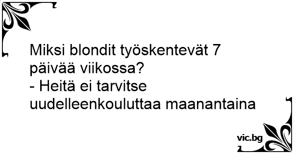 Q: Why should you keep a blonde on the job 7 days a week? A: So you don't have to retrain them every Monday. Varför jobbar blondiner 7 dagar i veckan? Så att man slipper återutbilda dom på måndag.