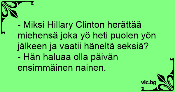 - Miksi Hillary Clinton herättää miehensä joka yö heti puolen yön jälkeen ja vaatii häneltä seksiä?