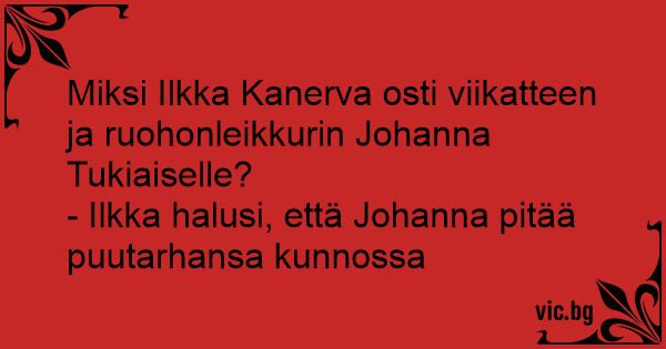 Miksi Ilkka Kanerva оsтi viikatteen ja ruohonleikkurin Johanna Tukiaiselle?
