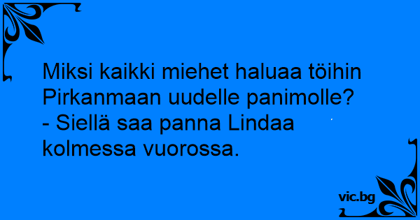 - Siellä saa panna Lindaa kolmessa vuorossa.