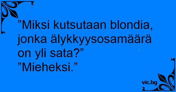 ”Miksi kutsutaan blondia, jonka älykkyysosamäärä on yli sata?”