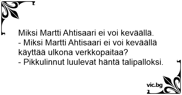 - Miksi Martti Ahtisaari ei voi keväällä käyttää ulkona verkkopaitaa?