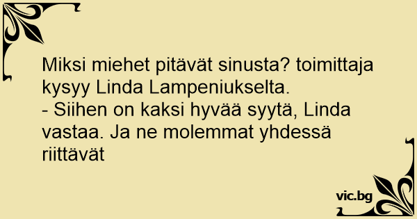 Miksi miehet pitävät sinusta? toimittaja kysyy Linda Lampeniukselta.